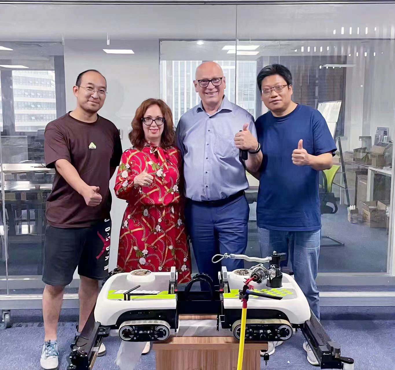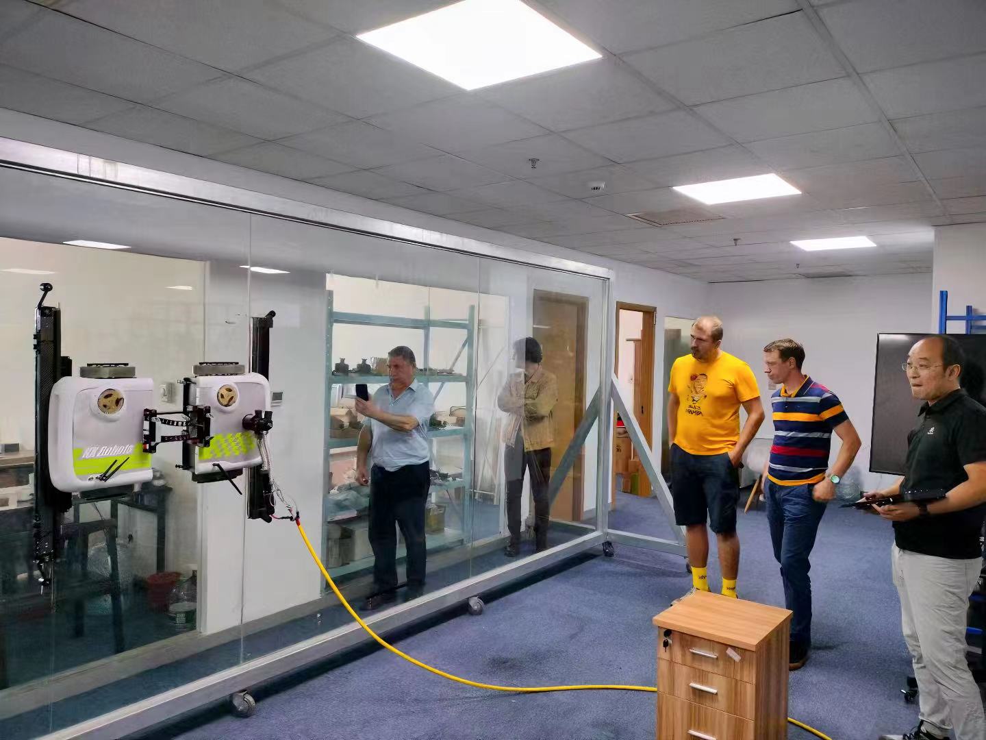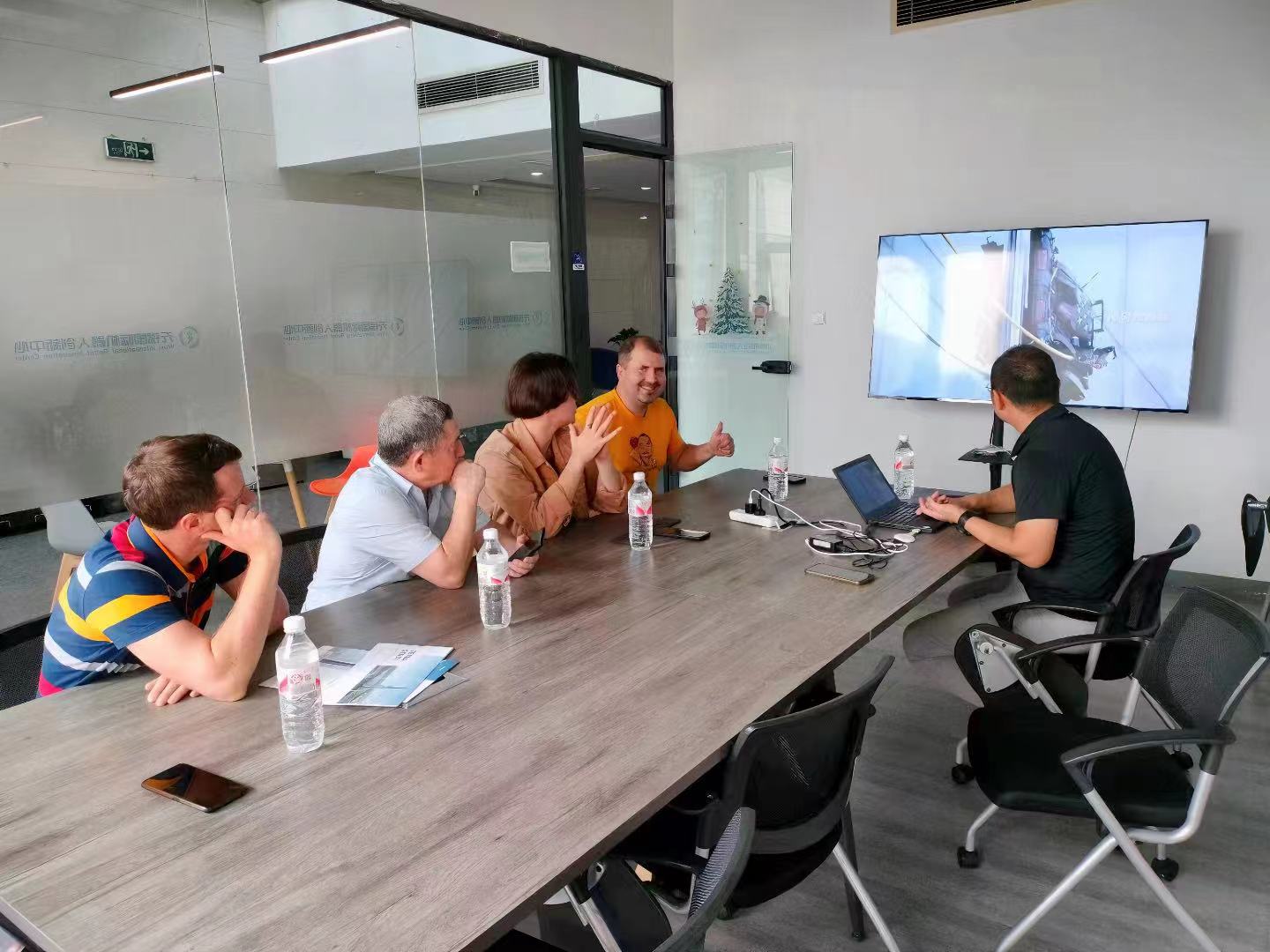 洽談初始,秦部長講述了申錫集團三十五年來的歷史沿革、資質榮譽、主要成就。交流過程中秦部長也介紹了公司的主要產品,包括吊籃、升降平臺、工業(yè)梯、擦窗機器人等等,外商們感受到了申錫從無到有,多層次、多維度發(fā)展的景深。